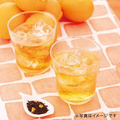 甘いオレンジの果汁あふれるフレッシュな香りが魅力のフレーバード紅茶。柑橘と相性が良いニルギリ紅茶をベースにした爽やかな風味。アイスティーにも。