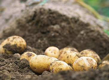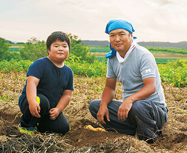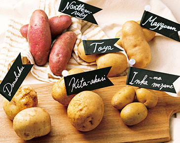 今日、ジャガイモは日本全土で栽培され、本州の温暖な地域や九州など南のエリアでは二毛作が可能ですが、北海道では春に植えた種芋を秋に収穫します。生産されている品種は約60種。一般の調理用、デンプン採取用、あるいはポテトチップスなどの加工用など、品種によりさまざまな用途で流通しています。
