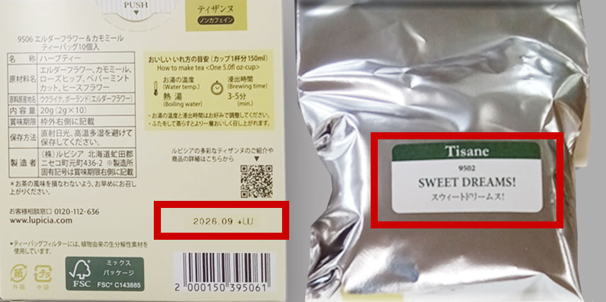 | ロット番号 | 22136502(箱裏面 賞味期限の下に記載) |