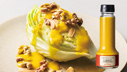 NK10214 キャロット&オレンジ選択するニンジン、玉ネギをじっくり炒めて甘みを引き出し、オレンジ果汁を加えました。まるで料理を作るかのように仕立てた、爽やかな味わいが魅力です。サラダなど野菜のほか、魚料理との相性の良さも抜群です。